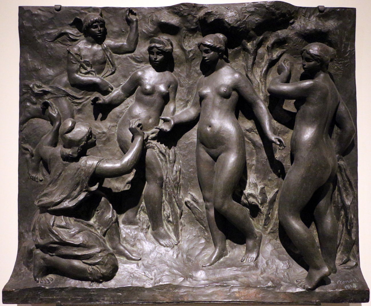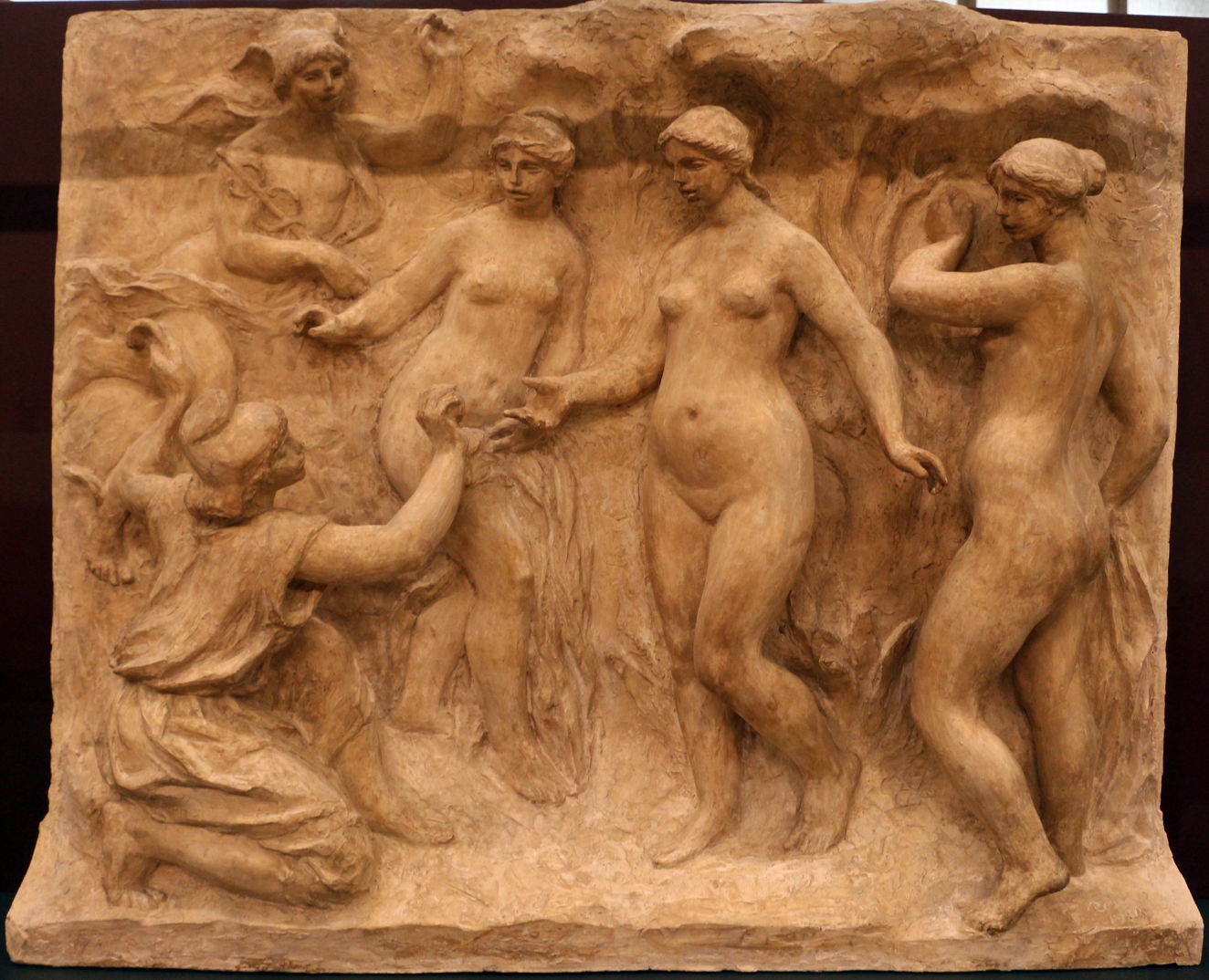 This bas relief, I think created in clay, was formed by the young sculptor under the direction of Renoir, to metamorphose his 2D painting of The Judgement of Paris into three dimensions.