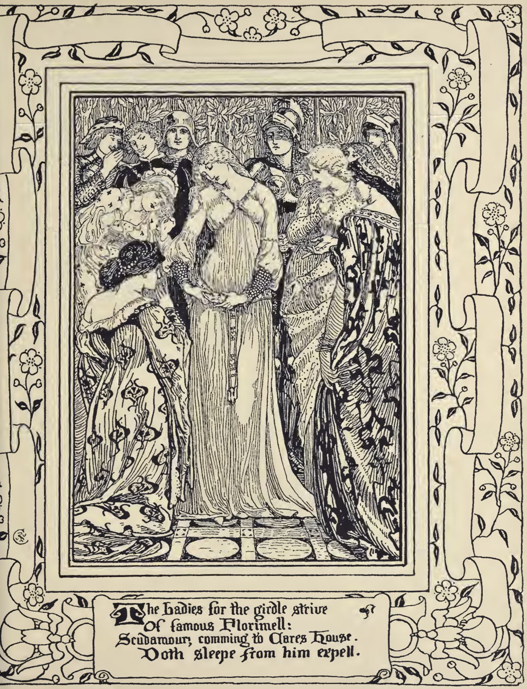 Once Britomart has been declared champion, the knights’ many ladies compete for the golden sash as their prize. This had been the girdle of Venus, and represemts both chaste love and wifely virtue, so can’t be worn by anyone who lacks either.