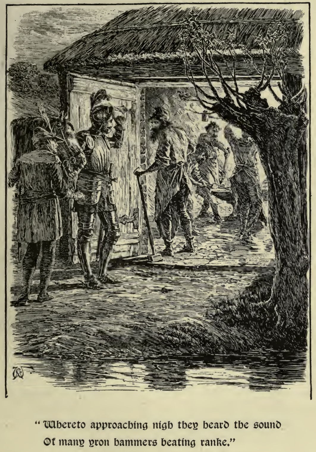 Later that evening, Scudamour and Britomart’s old nurse and squire Glauce, still searching for the knight who has stolen Amoret’s love, come across a small cottage in which to stay the night. There they are accommodated by the blacksmith Care, who with his labourers works his smithy day and night. The combination of the unceasing clangour of the hammers and Scudamour’s anxiety for Amoret prevent him from falling asleep.