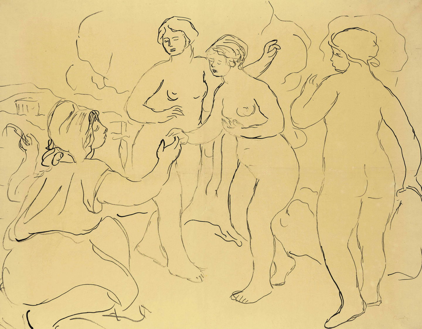 This is an example from the early development of Auguste Renoir’s Judgement of Paris. This is when the artist starts to express their mental image in recognisable figures and objects.