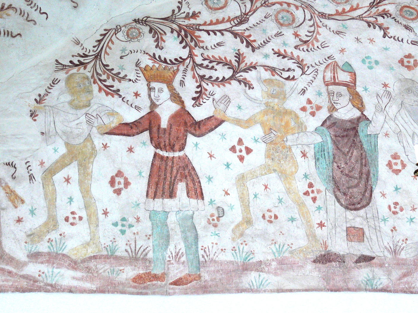 Some remarkable frescoes in Nørre Alslev Church, on the island of Falster in Denmark, which date from around the time of the Black Death, show what became known as the Danse Macabre or Dance of Death, which has remained a grim thread in art ever since.