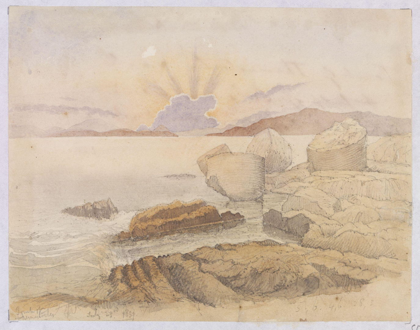On 23 July 1839, on his way back to Britain, he visited the Tomb of Themistocles with the Gulf of Salamis behind. Themistocles led the combined Greek naval force to victory here in battle against the Persian Empire in 480 BCE. When he died in the city of Magnesia, Ionia, in 459 BCE, his official tomb was built there, but it was rumoured that his bones were taken back to Greece.