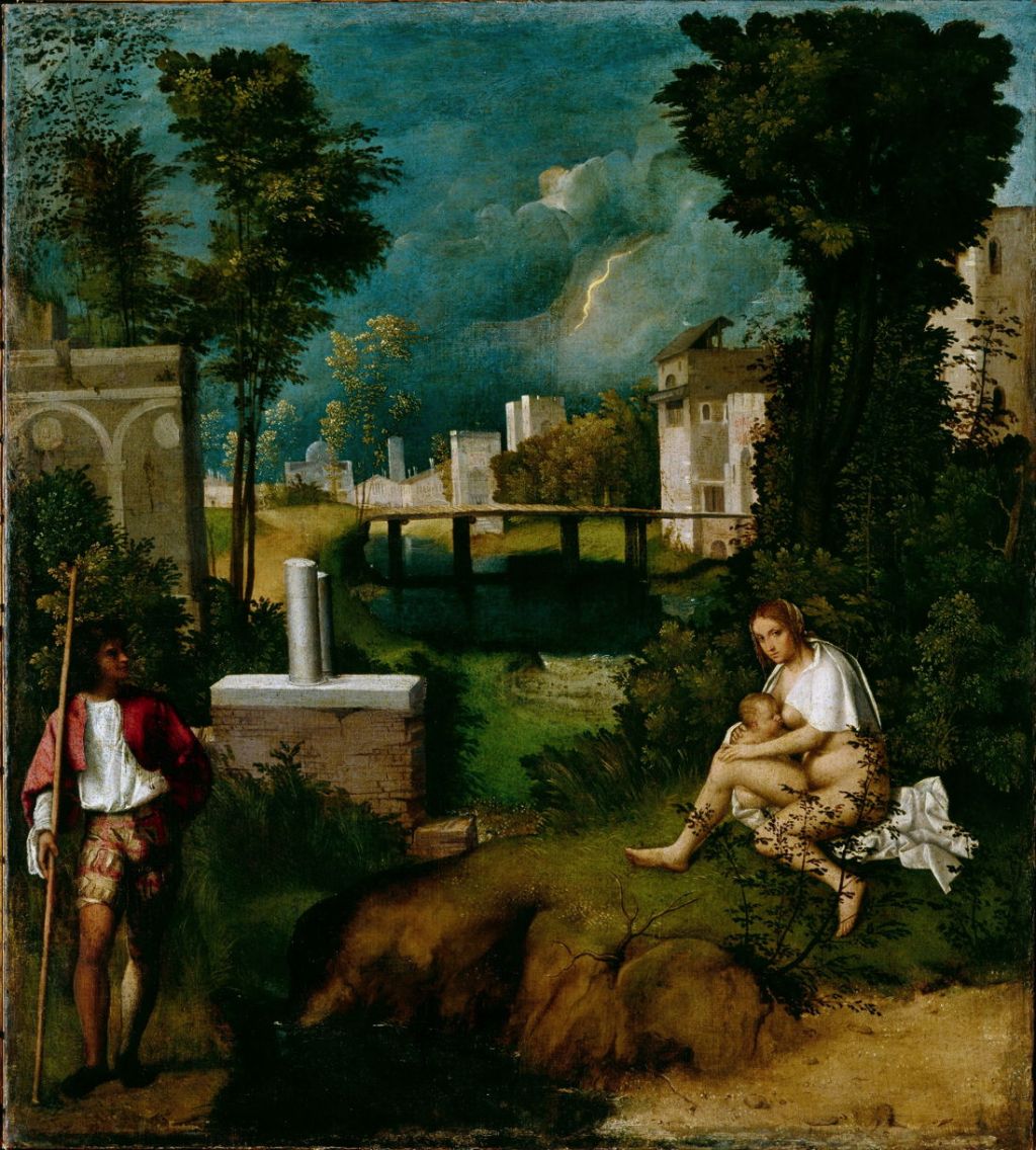 Giorgione’s revolutionary landscape The Tempest from just after 1500 remains enigmatic today, and may have religious references, but it marked the start of a new and wholly secular genre.