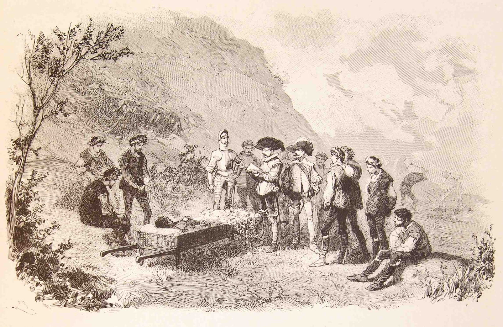 That prompted Don Quixote to defend her reasons and honour. The shepherds completed the burial, burning the dead man’s papers, and covered the grave with a rock slab until its tombstone could be installed there. The ceremony completed, they all dispersed, Don Quixote going in pursuit of the shepherdess, to offer her his services – something which didn’t work out as he had intended.