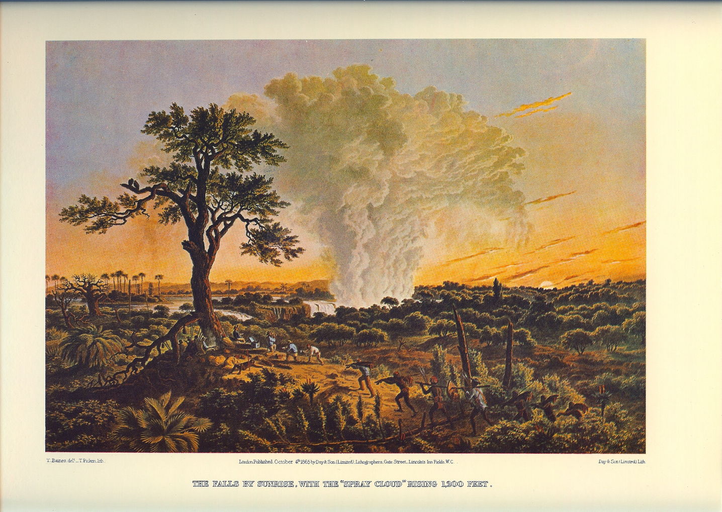 His next trip wasn’t such a success. He was asked to join David Livingstone’s expedition to the Zambezi in 1858, again in the roles of artist and storekeeper, but Livingstone and Baines quarrelled over the artist’s use of some spare canvas to paint a portrait. Baines did stay long enough with that expedition to become one of the first Europeans to see Victoria Falls.