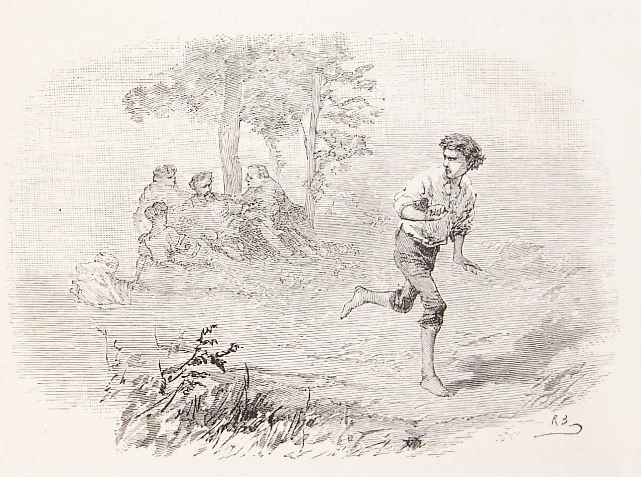 As they were resting, a young man passed by and recognised Don Quixote. He rushed up to the knight, embraced his legs and burst into tears. The lad explained that it was the knight who had freed him when he had been tied to an oak and flogged by his master. Don Quixote took the opportunity to explain to the others how the lad had been saved as a result of his actions.