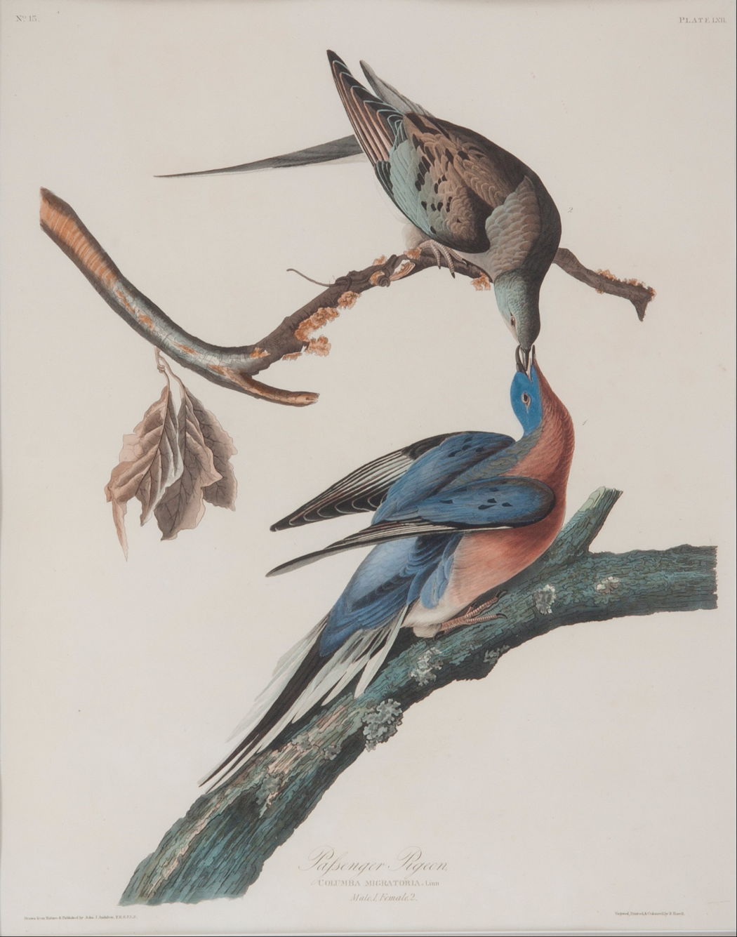 There can be no doubt as to the identity of Audubon’s Passenger Pigeon from 1838. At the time, this species (Ectopistes migratorius) was one of the most numerous and widespread birds of the US to the east of the Rocky Mountains. By the 1870s, though, it had suffered a sharp decline in numbers, largely from hunting and persecution by Europeans who had populated the US. Legislation to protect the species was enacted too late, and proved ineffective, so that by the 1890s it had all but vanished. Last examples in nature were seen around 1900, and in 1914 the last bird in captivity died, rendering the species extinct.