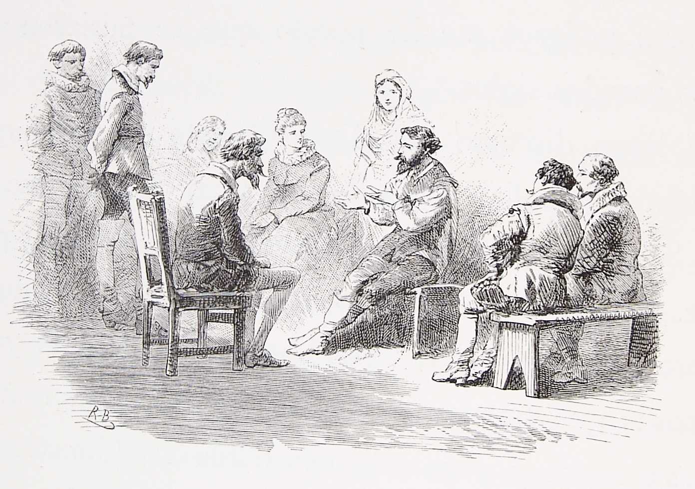 After the table was cleared, the innkeeper’s wife and her staff went to prepare the attic for the women to sleep in. Fernando meanwhile asked the man who was accompanying the woman from Algiers to tell of his life. When he agreed, they all sat down and fell silent to listen to him.