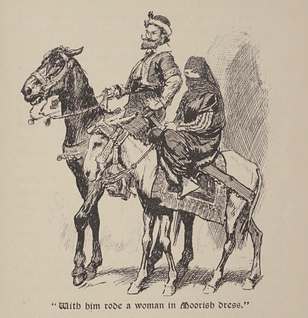This was brought to an end with the arrival of a Christian man and a woman, who looked as if they had travelled from Moorish parts. The woman was still in Moorish dress, her face covered with a veil.