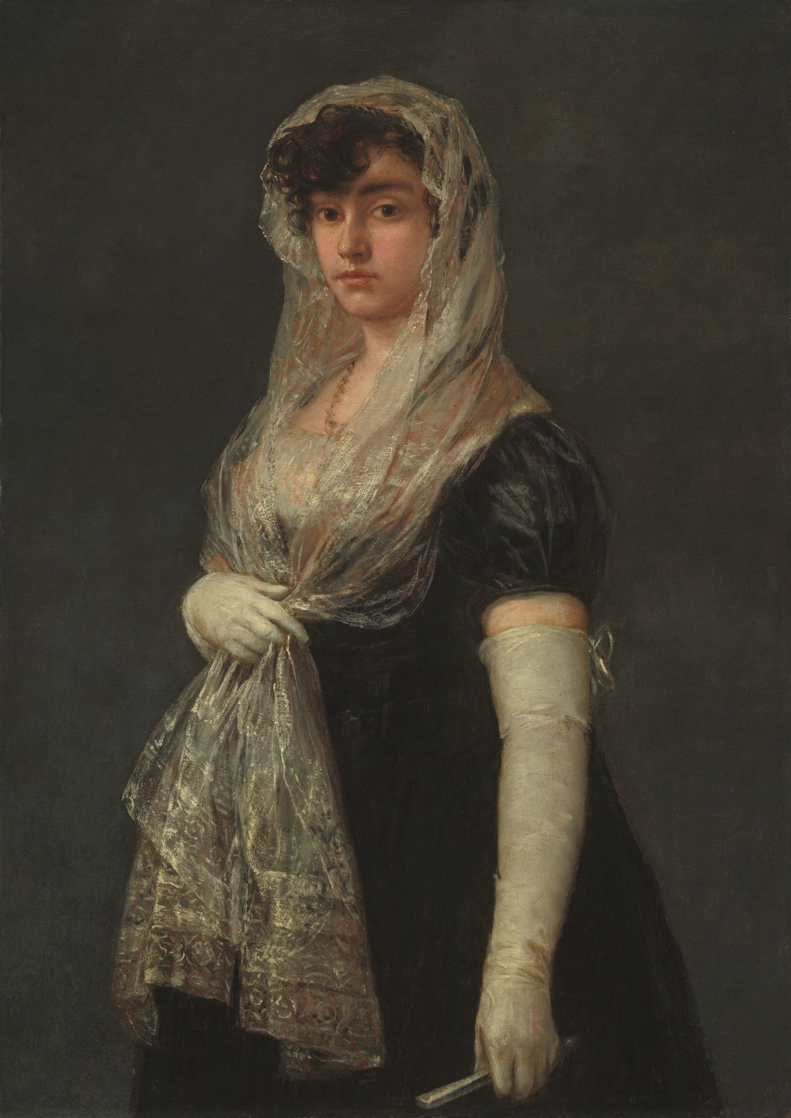 This wonderful portrait of a Young Lady Wearing a Mantilla and Basquiña, also known as The Bookseller’s Wife, was completed in the period 1800-05. It shows someone who undoubtedly must have paid a great deal less than the nobility, but Goya was still prepared to paint her with the same art and care as the rich and famous.