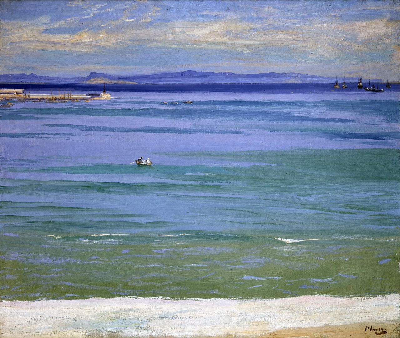 A Southern Sea (1910) may be a view across the Strait of Gibraltar, which could be the prominent peak on the horizon. Although other paintings of his from the early twentieth century had become much tighter, the clouds here are particularly painterly.