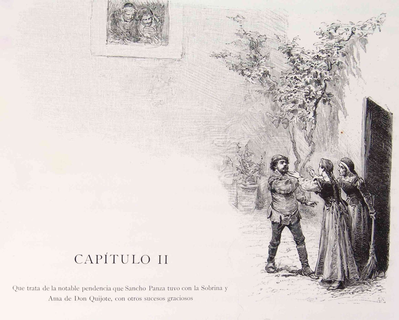 Just then they heard the housekeeper and Don Quixote’s niece outside, yelling at Sancho Panza, in a bid to prevent the squire from entering to see his master.