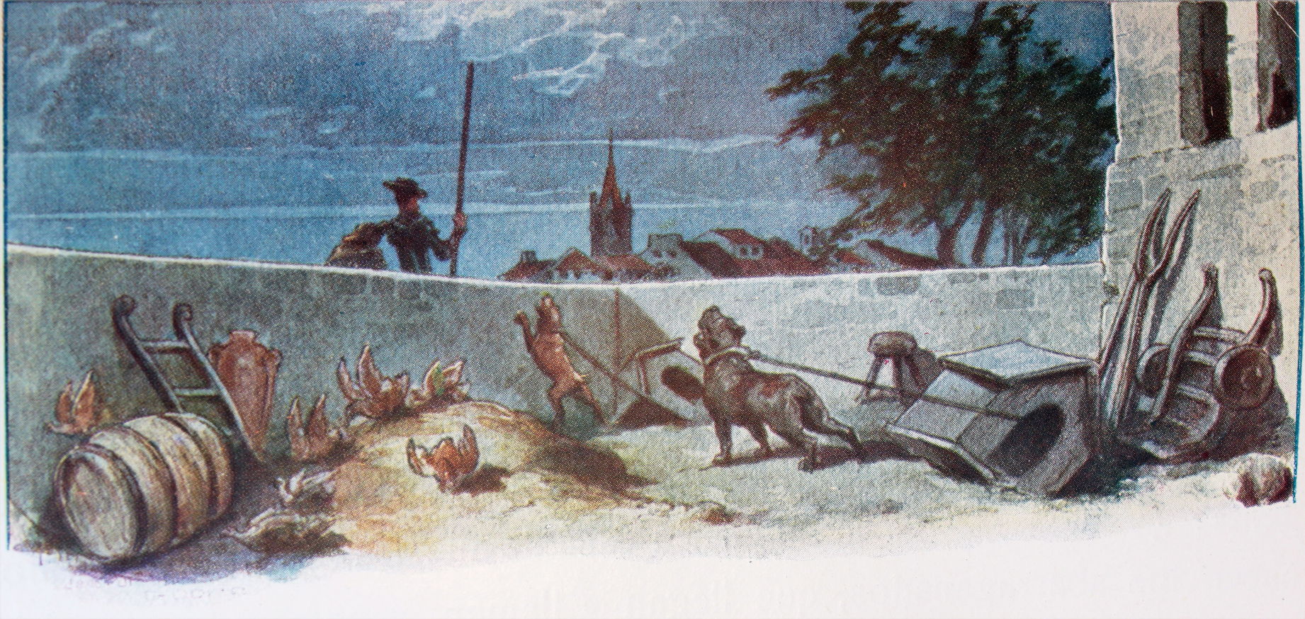Meanwhile Don Quixote and Sancho Panza were arguing over the latter’s use of incorrect words. After several misunderstandings and red herrings, they came to discuss the thorny issue of Sancho’s wages. The knight told his squire that there seemed to be no precedent of fixed wages, merely the reward of an island or estate as a bounty.