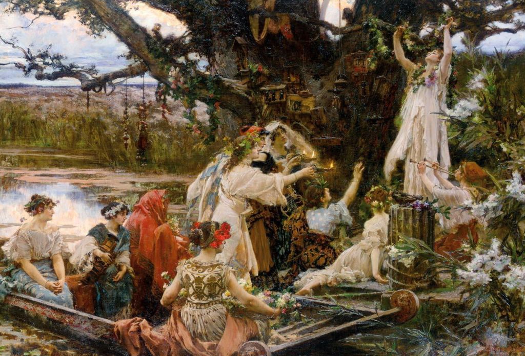 Pradilla shows a party of ecstatic young women worshippers at a shrine to Ceres on an ancient hawthorn tree – a wonderful flight of fancy perhaps inspired by his travels in Italy.
