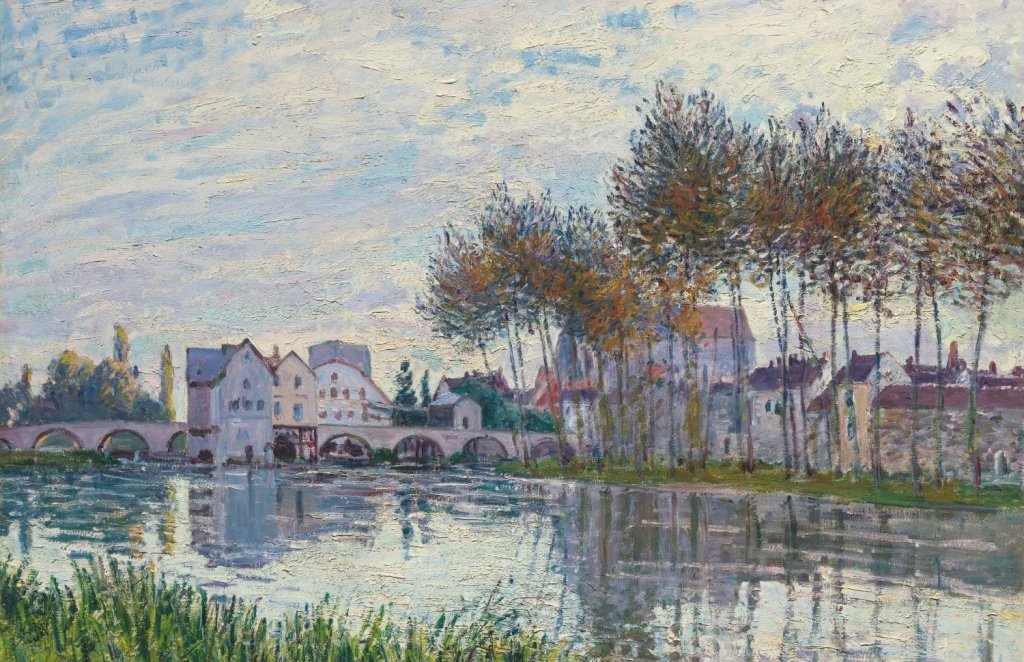 Alfred Sisley made good use of reflections in this view of Moret Bridge in the Sunlight from 1892, one of a series of over ten similar views of the town of Moret-sur-Loing, where he lived his later years.