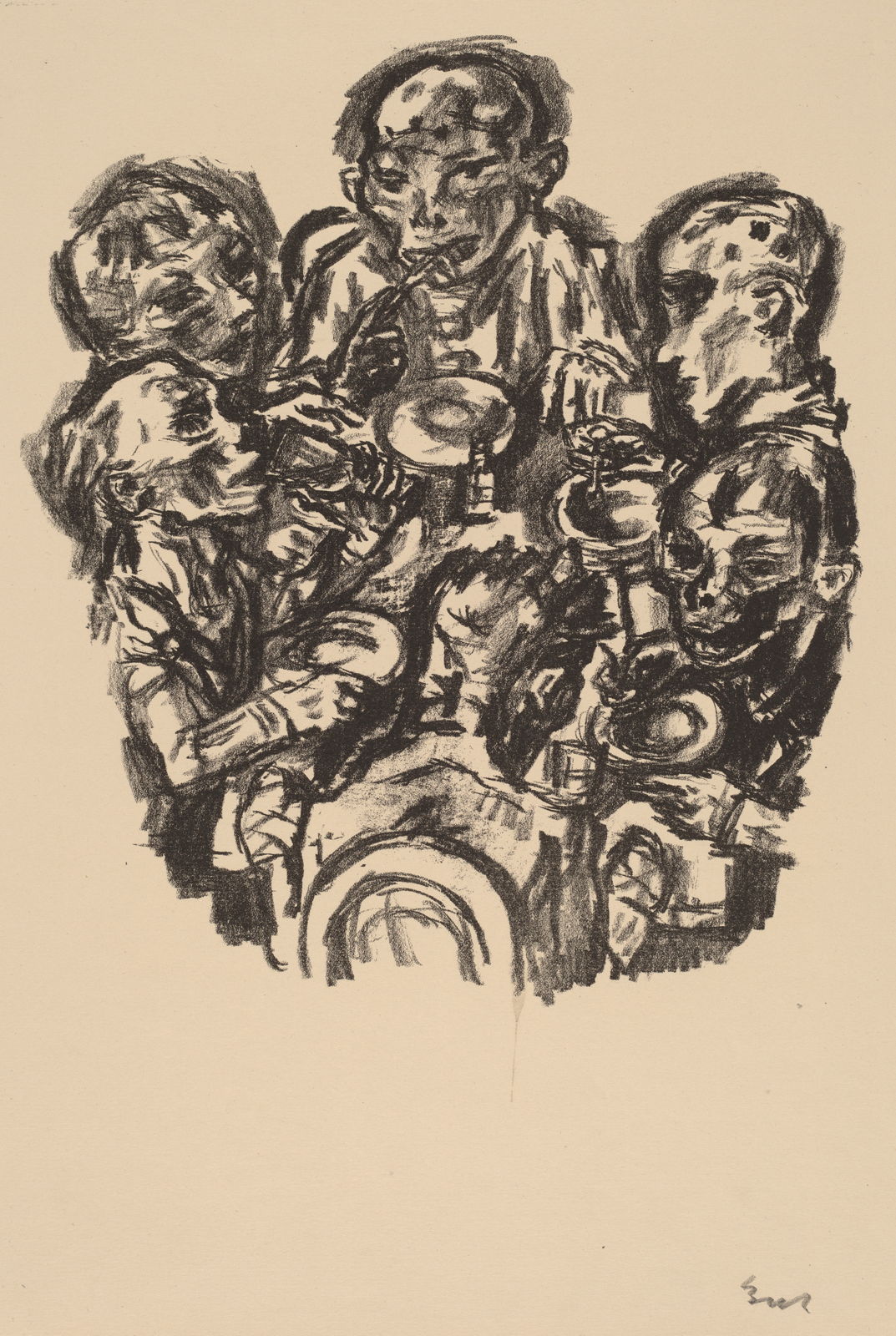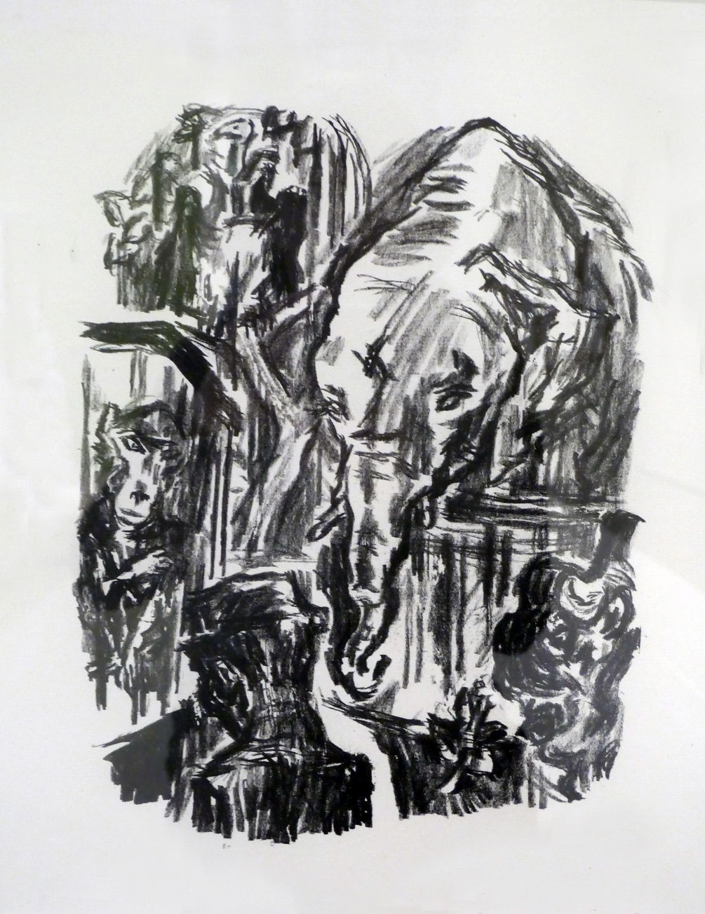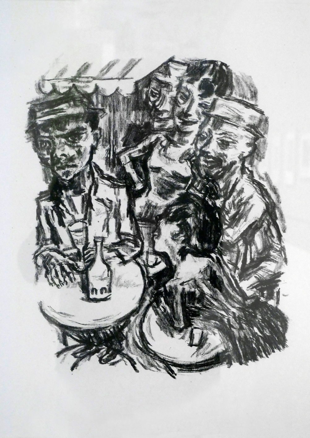Beeh drew Dead End in sanguine, presumably as a study for one of the twenty finished lithographs.