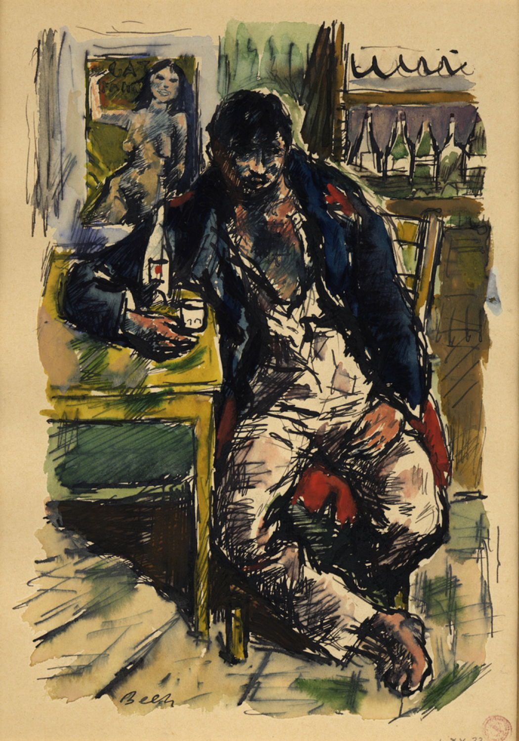 This watercolour of a Man Sat in a Bar develops this well-known theme.