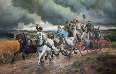 Two famous hay wains, Goya’s stone cart, horses and carts assisting a heavy steam crane in Paris, and carrying goods in the centre of New York in 1911.