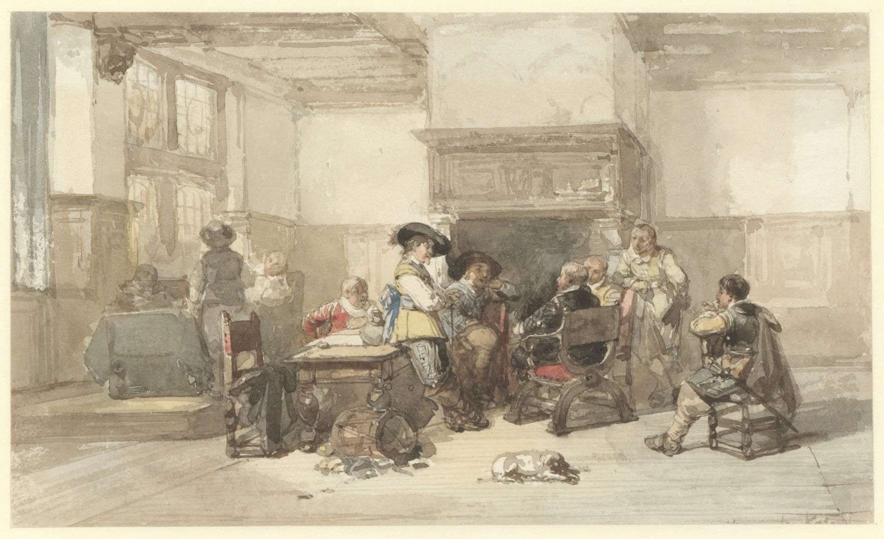 Officers by the Fire in an Old Dutch Interior is another loose watercolour of a period scene, probably from the Eighty Years’ War.