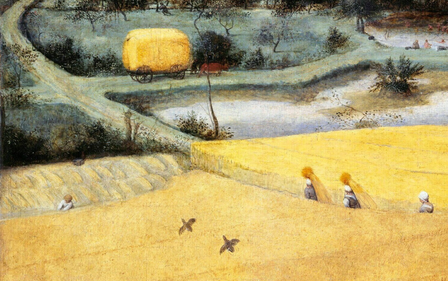 Pieter Bruegel the Elder (c 1525–1569), The Harvesters (detail) (1565), oil on panel, 119 x 162 cm, Metropolitan Museum of Art, New York, NY. Wikimedia Commons.