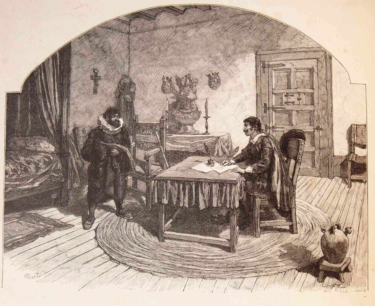 Sancho immediately dictated a reply to the knight in which he told him of the Duke’s letter of warning, and complained of the dietary restraints imposed by the doctor. He also asked Don Quixote to thank the Duchess for her generosity to his wife. The secretary despatched that response immediately before joining the others who were playing out this hoax on Sancho, and together they plotted how they would unseat the governor.