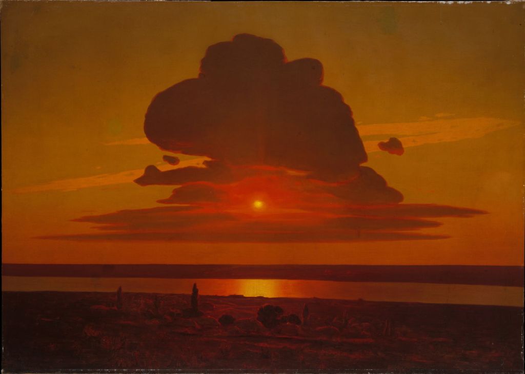 Arkhip Ivanovich Kuindzhi (1841-1910) was born in Mariupol, a city in the south-east of Ukraine, on the coast of the Sea of Azov, to a Pontic Greek family. The modern city still has a substantial Greek minority. Kuindzhi trained for a while in Aivazovsky’s workshop in Feodosia before making his way to Saint Petersburg, where he entered the Imperial Academy. Several of his paintings are now in the Tretyakov Gallery.