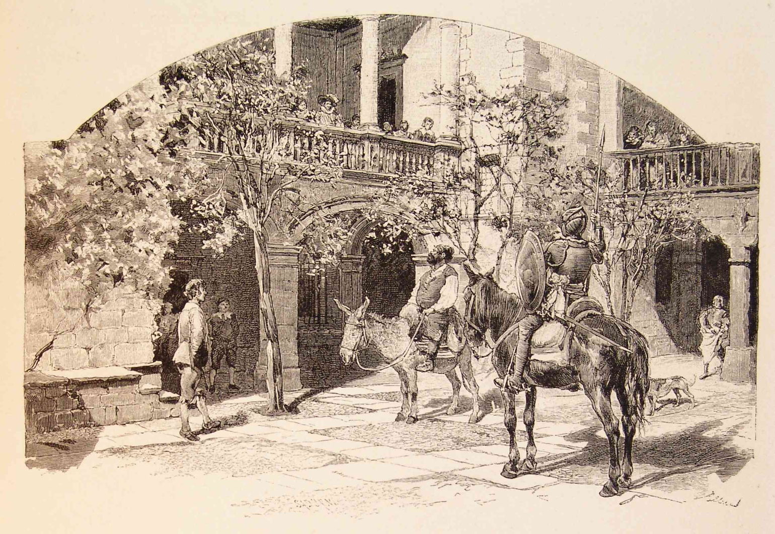 Don Quixote and Sancho Panza then rode out of the palace on their way to Saragossa.