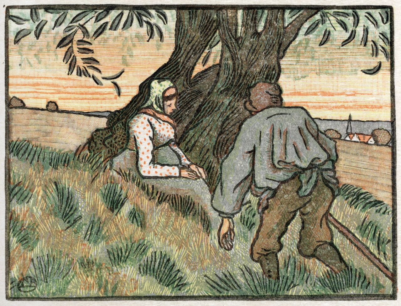Pissarro made this wood engraving of a pastoral scene in 1901.
