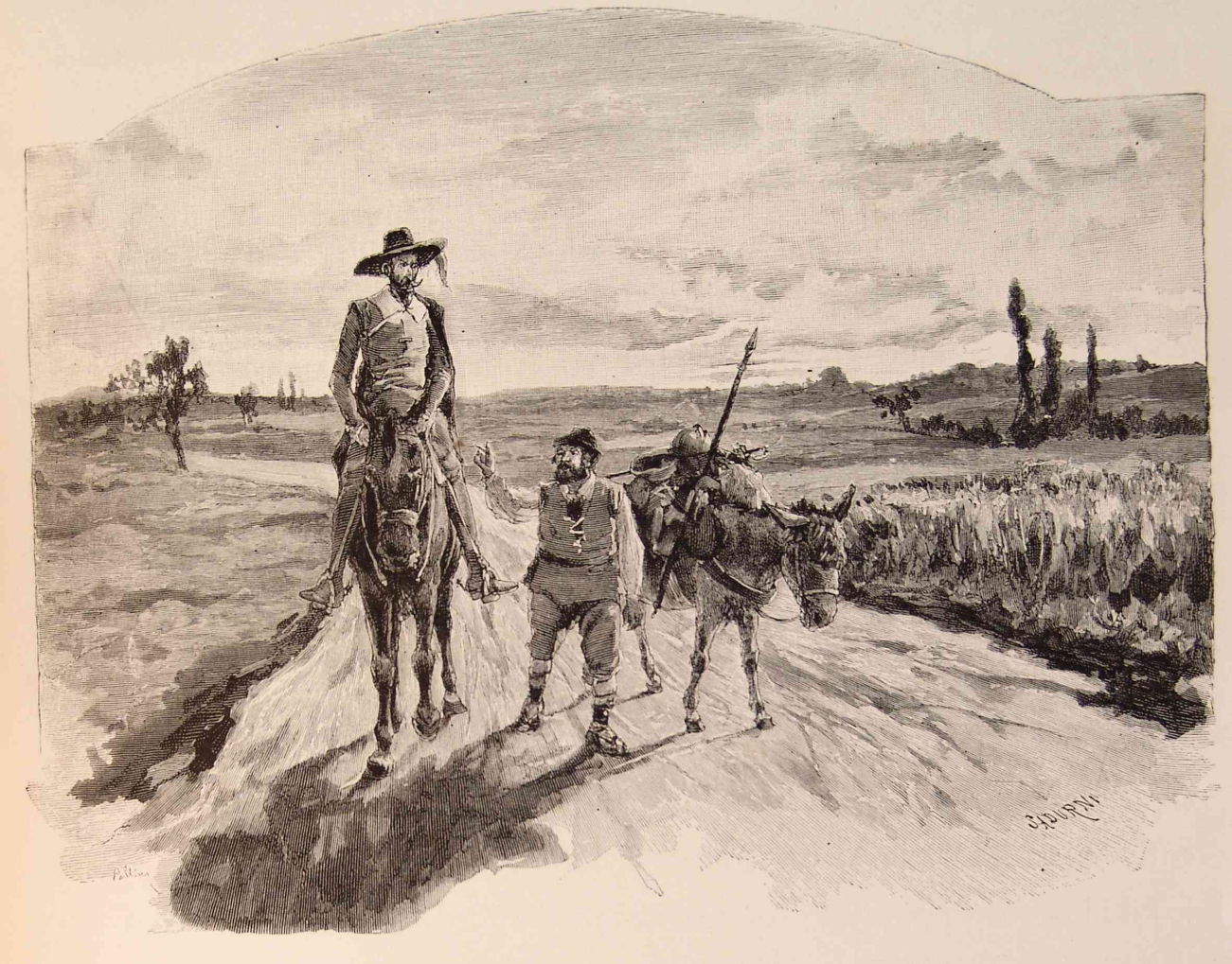 Don Quixote indulged in a fantasy about them both living an Arcadian life as shepherds, which led to a speech about country musical instruments and their names. Once again he criticised Sancho for mixing proverbs, then did it himself, as Sancho was quick to point out. They eventually turned off the road to rest for the night.