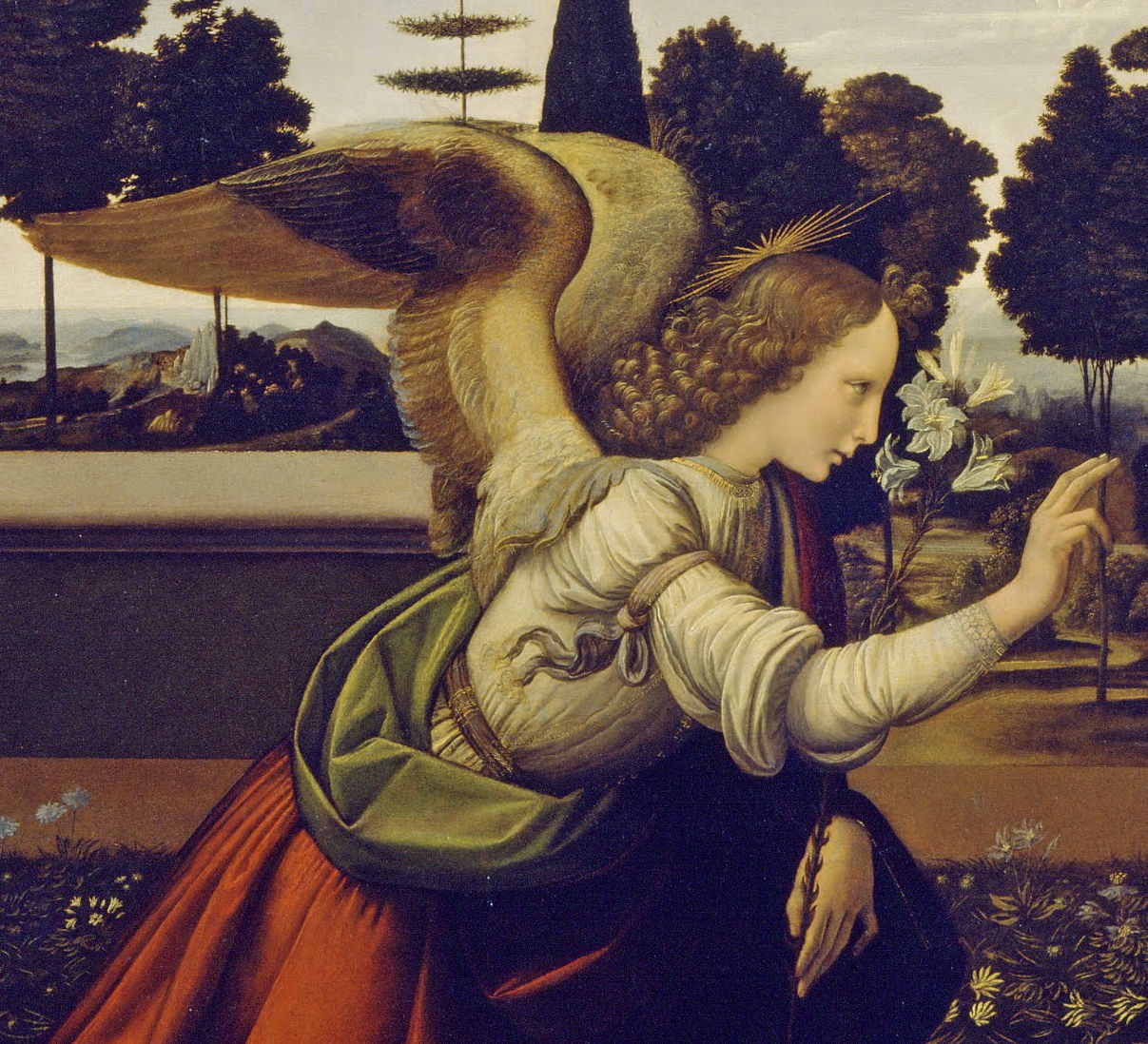 Leonardo’s Annunciation, painted in oil and tempera on a poplar panel, is thought to date from around 1473-75, a few years before Primavera.