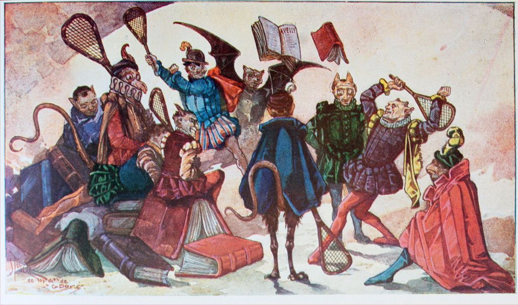 She then described seeing a dozen devils at the gates of hell, playing pelota with books. As a result, one of the books was torn apart: that turned out to be a copy of the second part of Don Quixote, which the devils duly sent to hell.