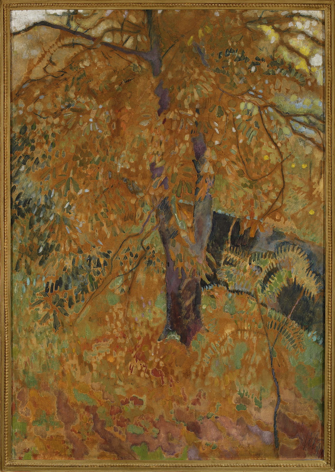 Before the end of the war, in about 1917, he painted this richly coloured view of a tree in Autumn.