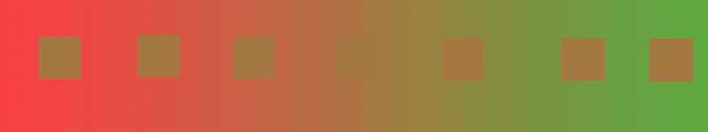 For example, these two test strips feature areas which are set at identical lightness/brightness, but whose luminance/luminosity differs. The first strip uses lightness/brightness fixed at 50%, the second at 75%. However the different coloured areas appear to have different levels of chroma, with the red and blue squares apparently higher in chroma than the others. This matches the differences in luminance/luminosity. This is thoroughly confusing, and illustrates how difficult it is to isolate chroma effects.