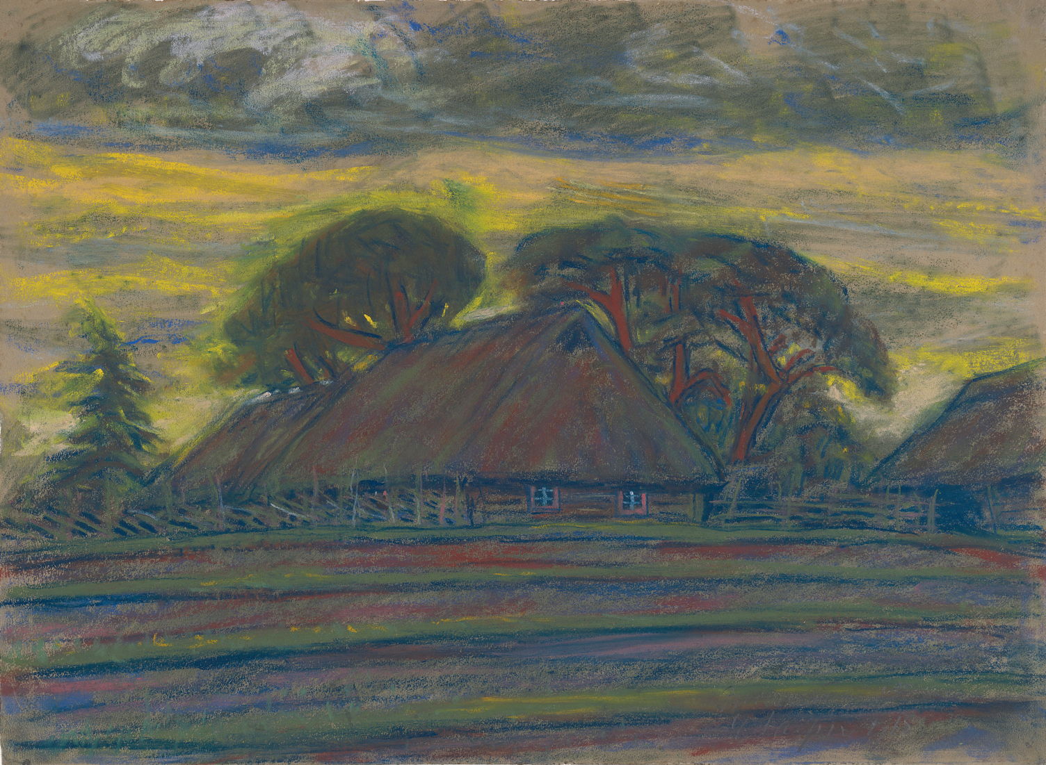 Taebla-Nõmme from 1918 shows a more substantial farm near the west coast of the Estonian mainland. His sky is again rich in colour.
