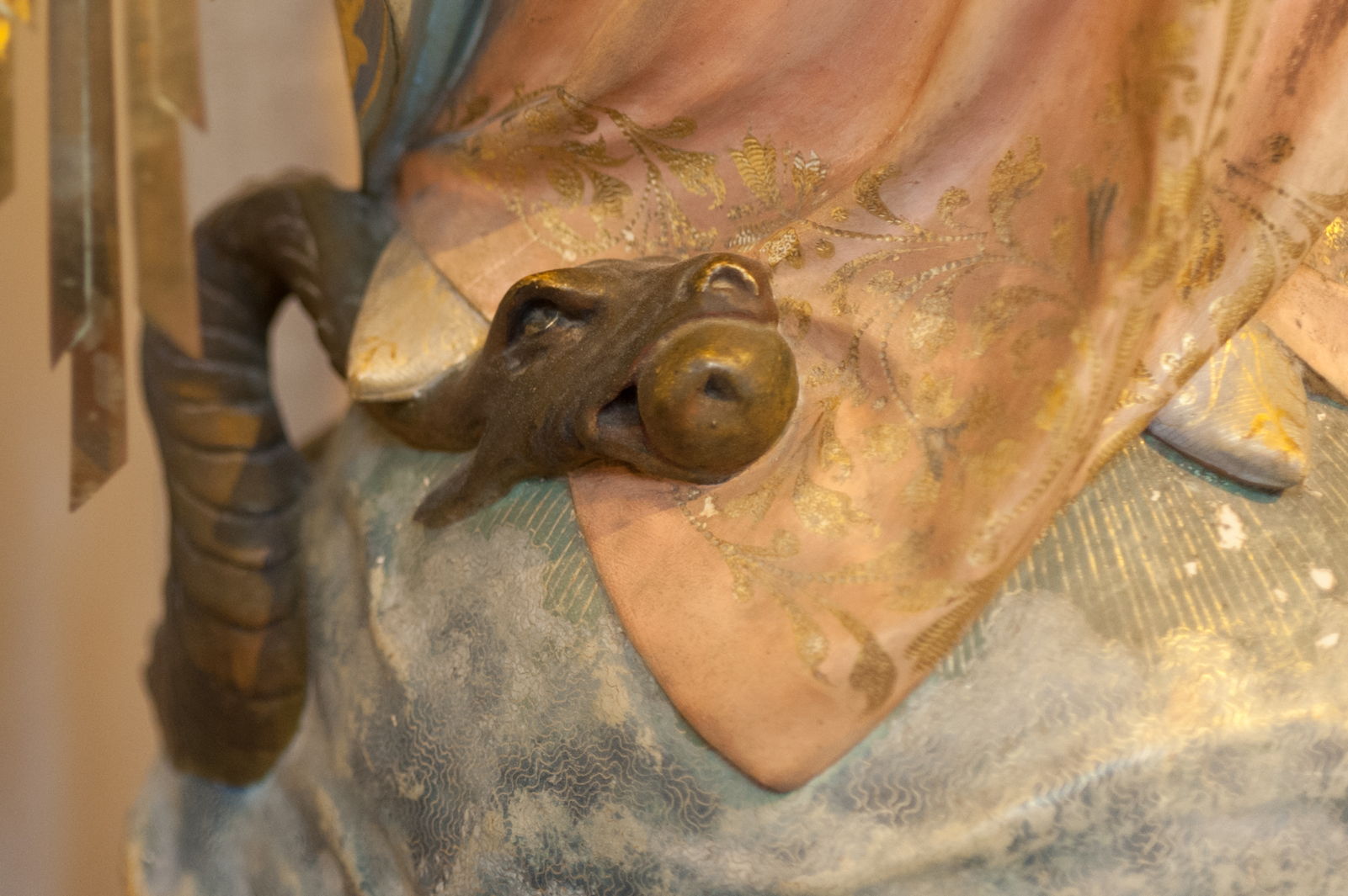 Polychrome statues of the Virgin Mary remain common across the churches of Europe, and many of them show Mary standing on a snake. A frequent if even more puzzling alternative is for her feet to be resting on the heads of putti or infants, resembling the human head sometimes attached to the snake’s body in depictions of the Fall of Man.