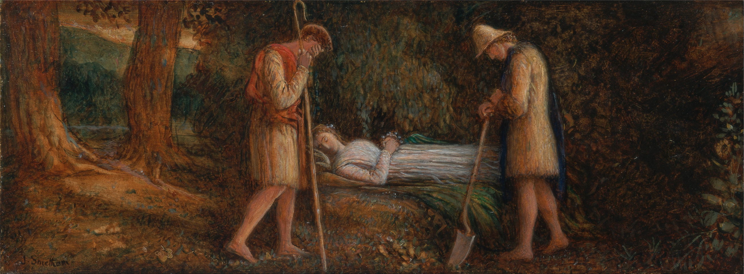 James Smetham’s far later Imogen and the Shepherds, from 1874, is more enigmatic still, with two shepherds grieving over the apparently lifeless body of Imogen.