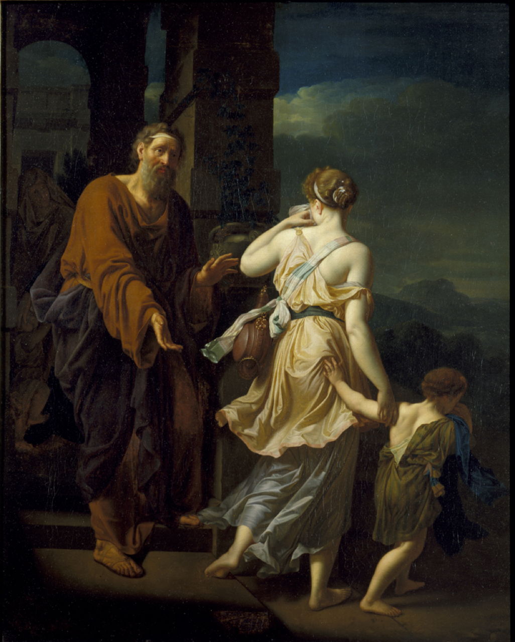 Its sequel shows The Expulsion of Hagar and Ishmael (c 1699), as the young mother and her son Ishmael leave Abraham, with Sarah looming behind him in the shadows.