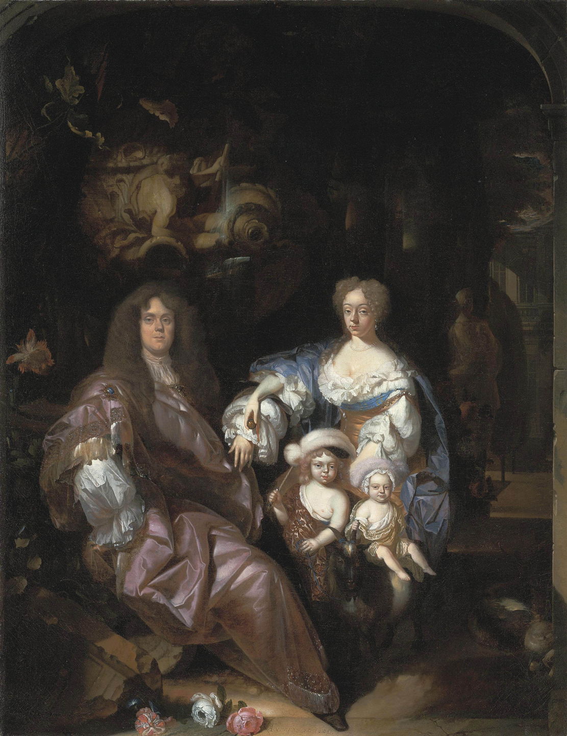 He painted this Portrait of a Family in a Garden in 1682, when he was only twenty-three. Although its setting is dark and mysterious, he has rendered the fabrics in great detail.