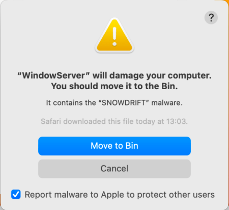 Samples of four malicious software downloaded and run on macOS 13.1. Could it detect and block them effectively? Or do you need 3rd party protection?