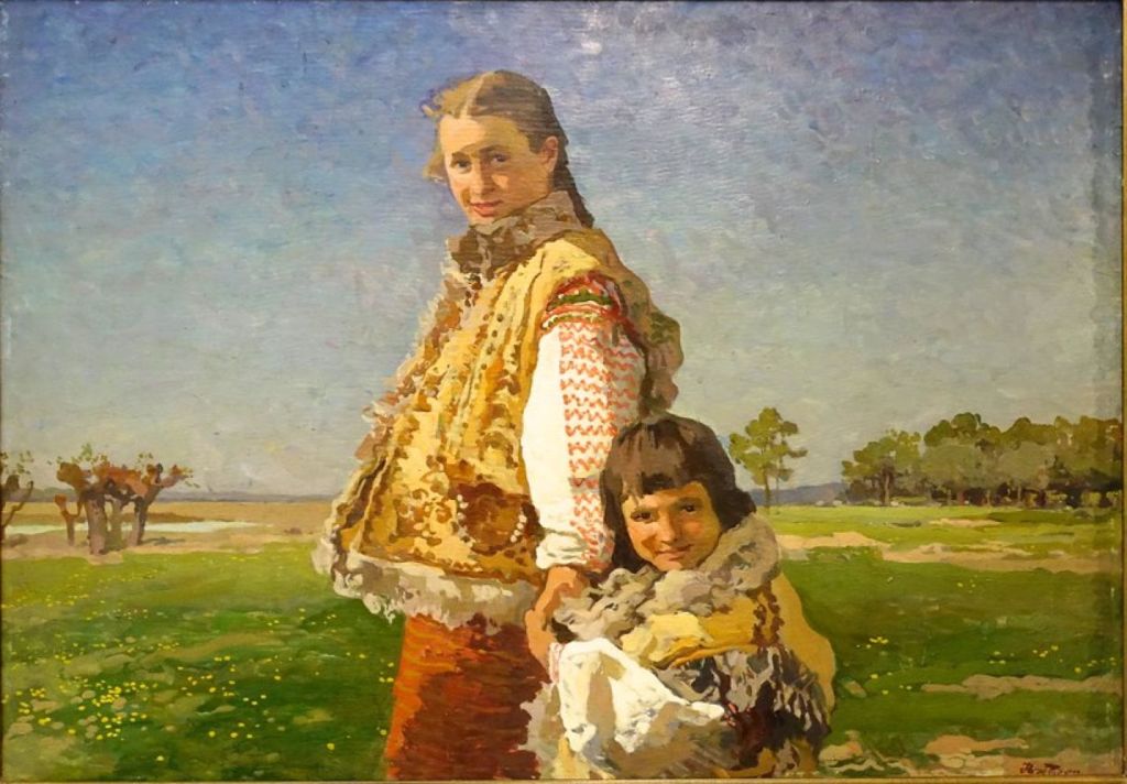 His figurative painting includes portraits such as this pair of Hutsul Girls from 1933. They are seen here uncharacteristically against flat and open country, rather than the steeper land of the Carpathians.