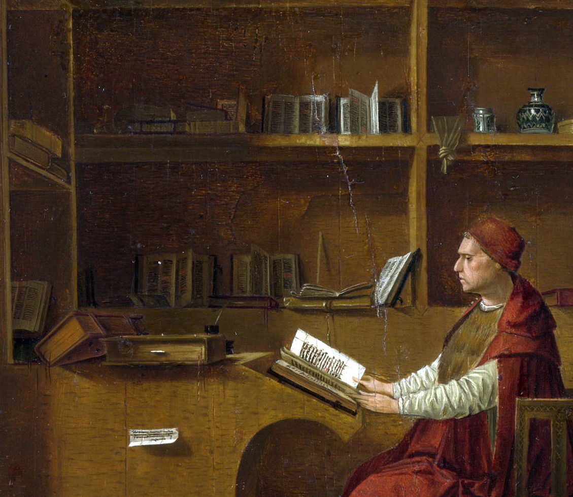 More typical is the cartellino at the lower edge of his Christ Blessing from about the same date, which states the year and Antonellus Messeneus me pinxit, Latin for Antonello da Messina painted me. Use of cartellini was a technique handed on by Antonello to his logical successor, Giovanni Bellini, who continued the practice through much of his career.