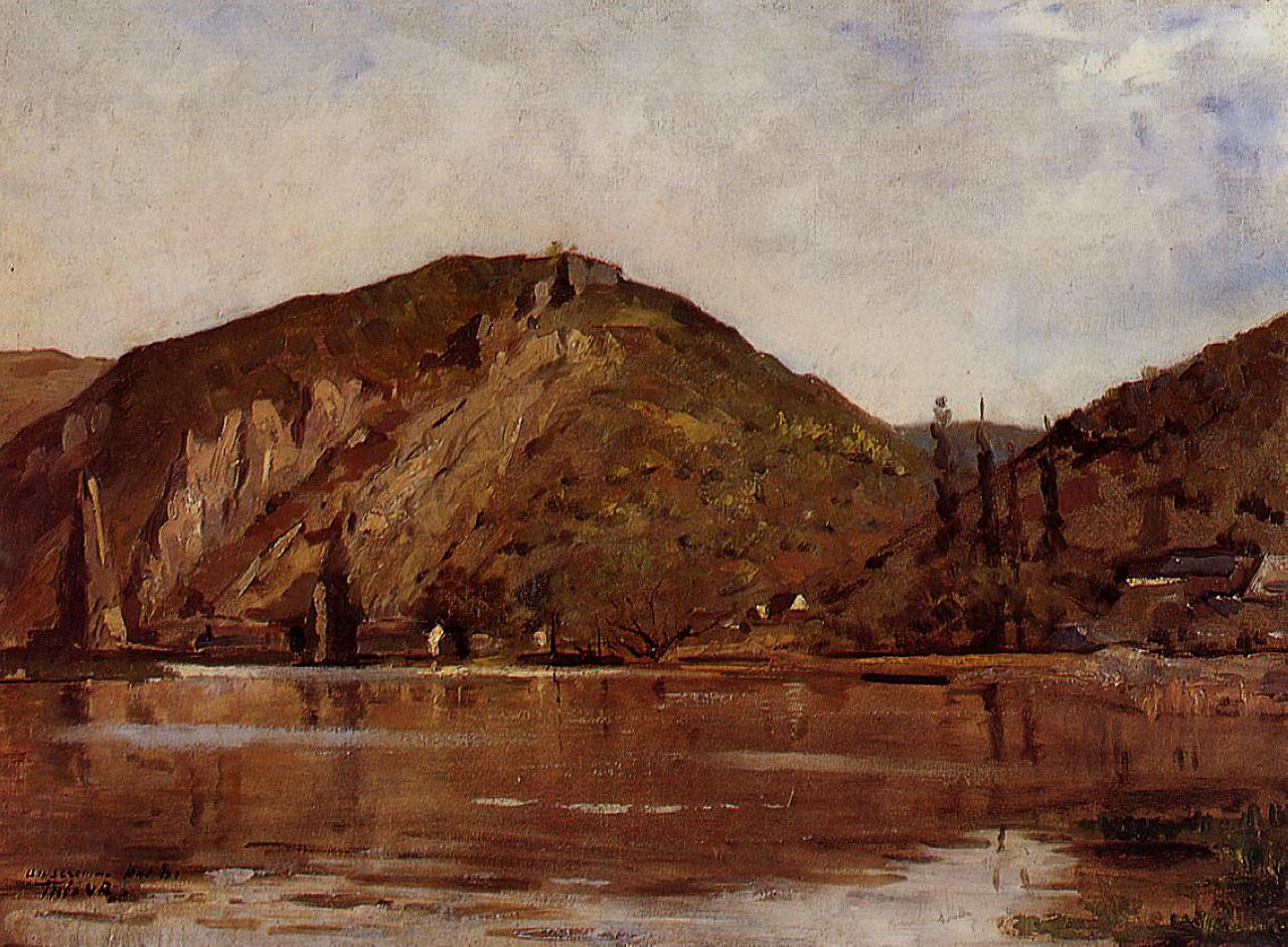 His Meuse River around Namur from 1880 shows rugged scenery near this provincial capital in Belgium. His style is here largely Barbizon School.