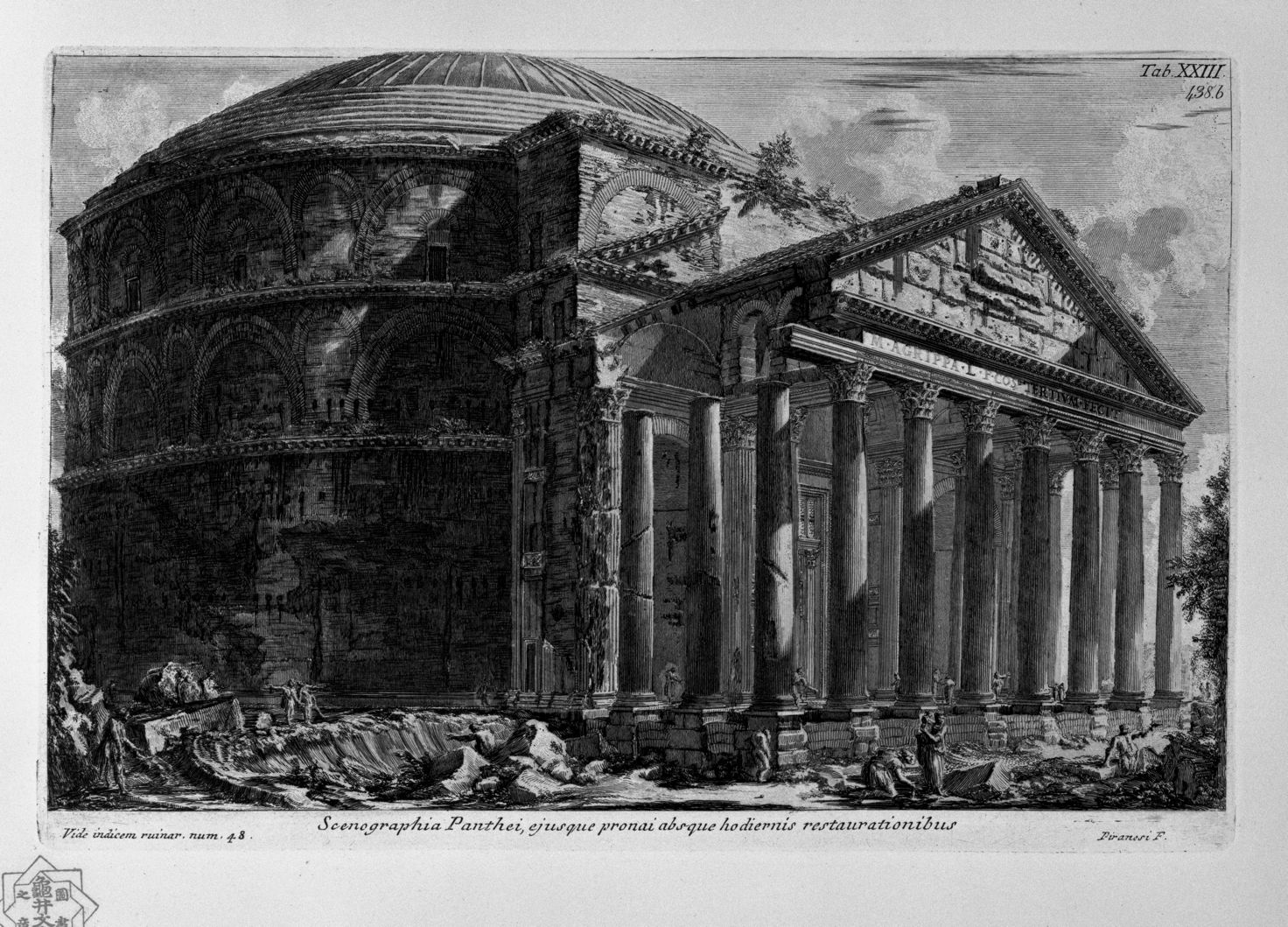 Piranesi’s later collection of views of Rome published under the title of Campus Martius in 1762 included this fine etching of the exterior of the Pantheon.
