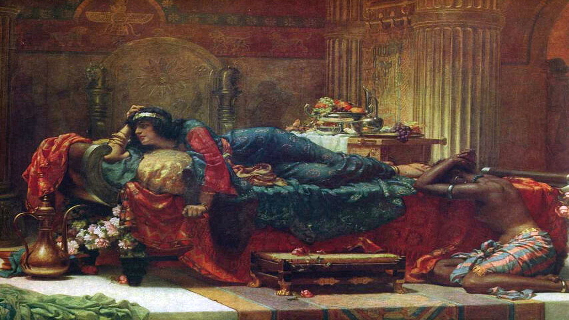 Normand’s Vashti Deposed, also from 1890, returns to King Ahasuerus of Persia to tell the story before he took Esther as queen. The King held a banquet for his court, and while that was going on, his first Queen Vashti was feasting the women. On the seventh day of their feasting, the King summoned his Queen for her beauty to be displayed to his group, but she refused. After taking advice, he replaced her with Esther.