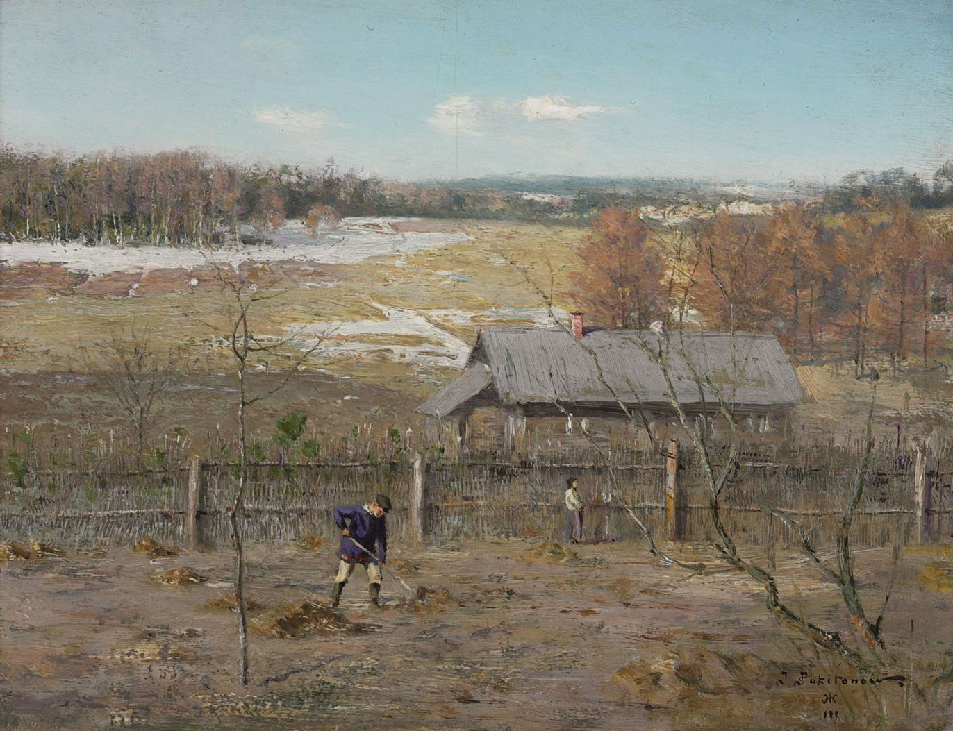 He painted In the Kitchen Garden there in April 1904, with the winter’s snow still melting from the fields behind his smallholding.