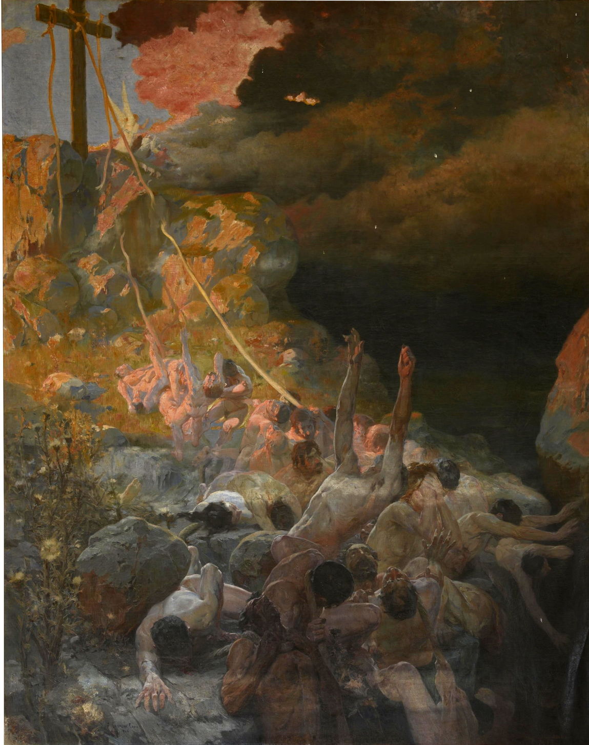 My final vision of Hell comes from Ferran Cabrera i Cantó, in his painting of The Abyss from 1906. It returns to a seething mass of naked people losing contact with the crucifix at the top left, and sliding away into the yawning abyss of Hell at the lower right, where everything goes dark.