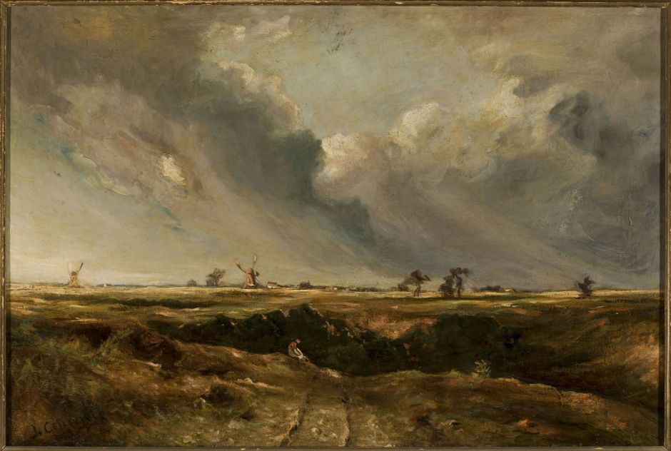 Many of Crome’s landscapes feature skies inspired by Dutch painters. His Landscape with Windmills is one of his most remarkable, as a signed painting that appears to have been sketched in front of the motif. This sky wouldn’t look out of place in an Impressionist work from fifty years later.