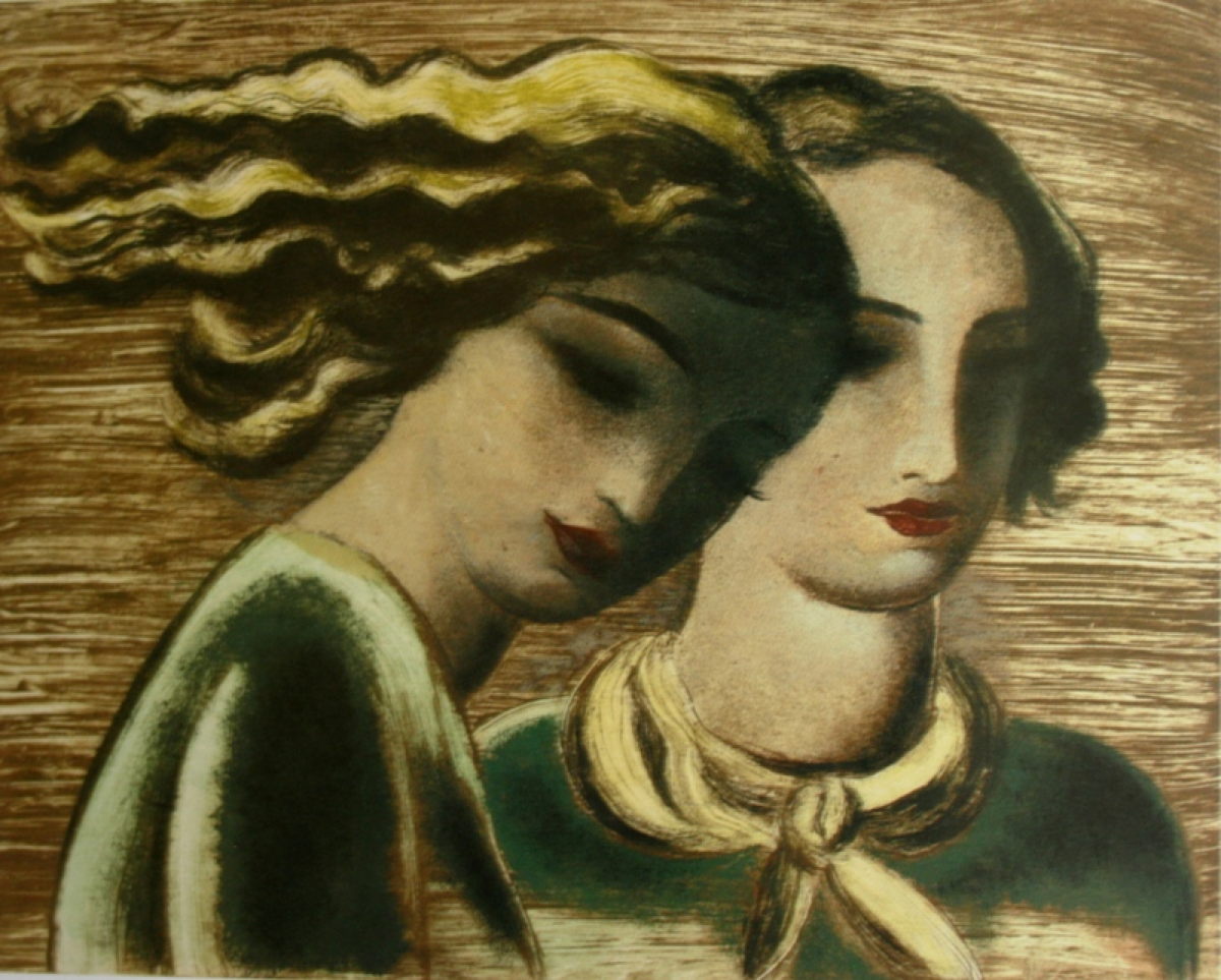In Musicians from the same year he shows the gentle influence of Cubism. This couple are busking in a street, with the man playing a violin, and woman a harp.