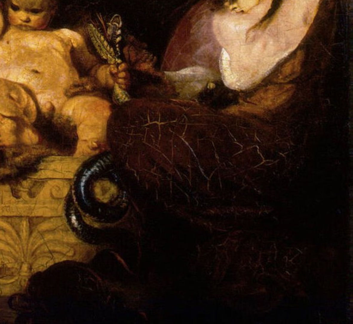 Similar loss of structural integrity has afflicted his Infant Hercules Strangling Serpents in his Cradle from 1788, in its thickly-painted passages.