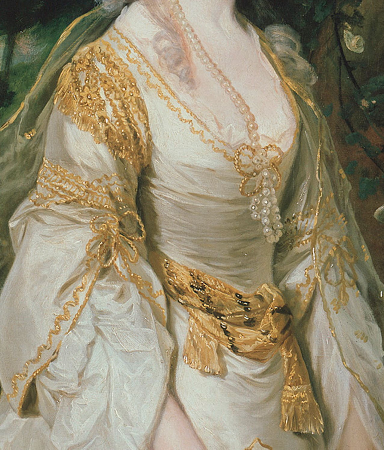 Reynolds’ early stages are shown well in this abandoned portrait of Mrs Robinson from about 1784, where most of the paint layer is sufficiently thin as to allow the texture of the canvas to show through. When used with ‘lean’ paint, this dried quickly and complies with the longstanding edict of applying ‘fat’ over ‘lean’, so that the lowest layers dry first.